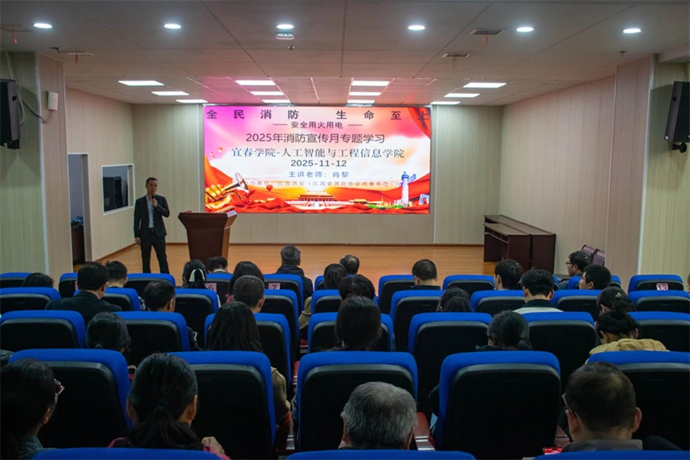 11月12日下午,人工智能与信息工程学院于实训楼E408开展2025消防宣传讲座,我院全体教职工参与。此次讲座由江西省消防协会理事单位相关负责人肖黎主持,旨在增强全院教师消防意识、广泛普及消防知识、提升大家应对火灾等突发事件的能力。