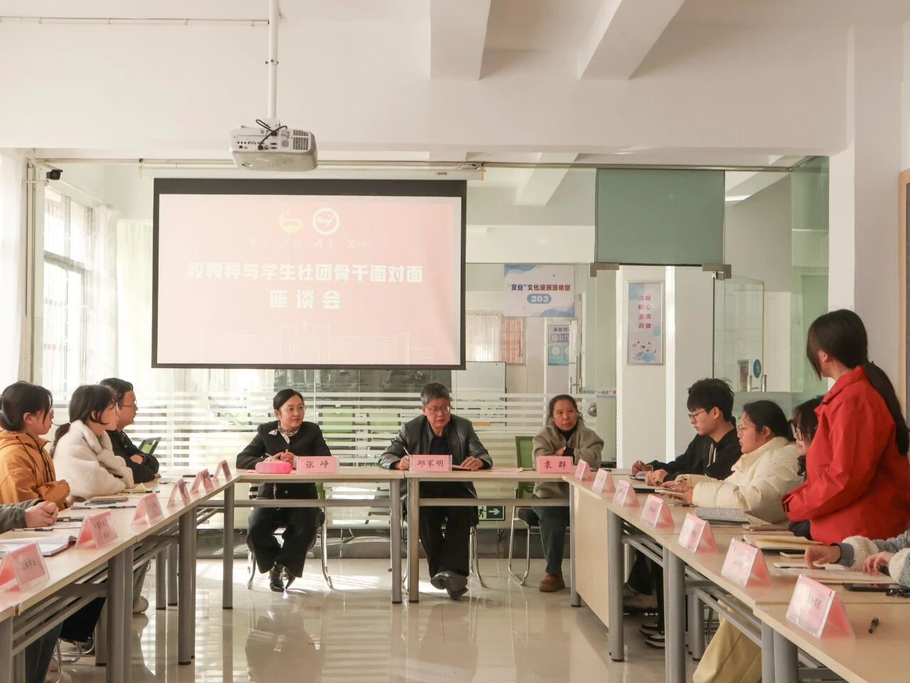 此次座谈会为学生社团搭建了与校领导直接沟通的交流平台,为学校优化学生社团管理提供了依据,进一步推动学生社团健康有序发展,助力学生社团在专业深耕、品牌打造与团队建设中实现新突破。