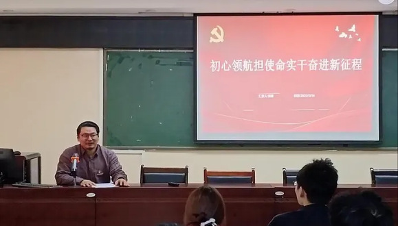 11月14日,院学生第二党支部书记梁辉以谈心谈话形式讲授“初心领航担使命,实干奋进新征程”主题党课。他带领学员回顾党的光辉历程,并结合时政热点锚定新时代大学生的奋进坐标,强调青年学子要始终初心如磐,以实干姿态在强国建设征程中找准定位、勇毅前行。