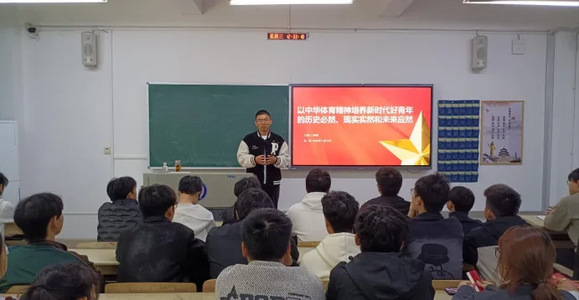 11月12日,院团委书记陈浩以“以中华体育精神培养新时代好青年的历史必然、现实实然和未来应然”为题进行授课。他结合习近平总书记提出的中华体育精神核心内涵,依托我院“智造十连冠”的体育育人成果,系统阐释了中华体育精神作为青年品格塑造根基的历史意义与现实价值,引导学员将拼搏进取、团结协作的体育精神融入专业学习与发展规划,推动精神力量向实践能力转化。学员们课后表示,将以体育健儿为榜样,在学业攻坚与集体活动中践行精神内核。