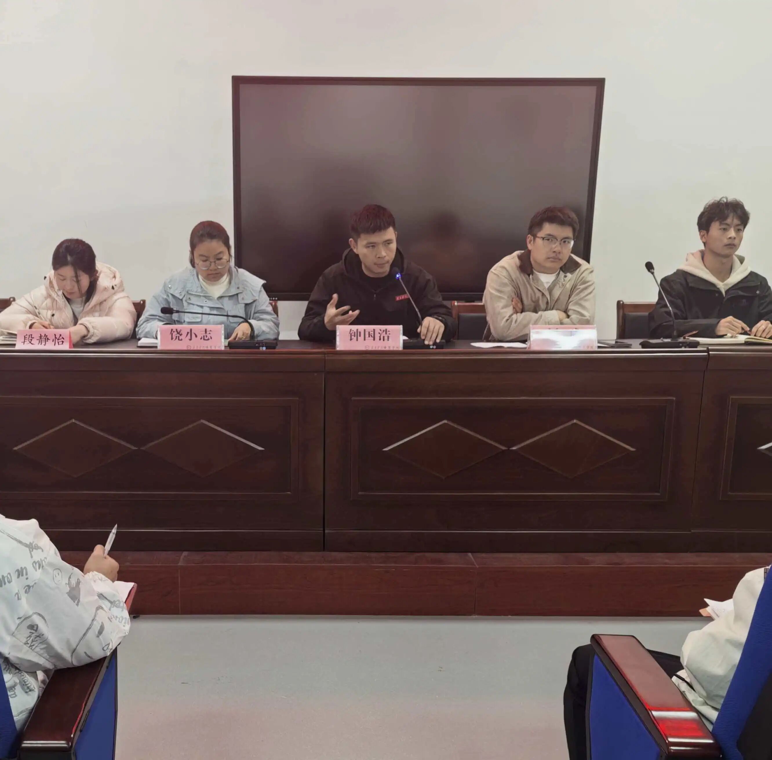 接着,刘成就学生干部队伍建设与工作机制优化提出要求:他强调学生骨干需强化责任与示范意识,在班级、年级中应主动履职,发挥桥梁纽带与模范带头作用。最后,饶小志强调各社团部门要强化作风、严格值班纪律,同时建立工作动态反馈机制,明确信息报送规范,保障工作高效推进。