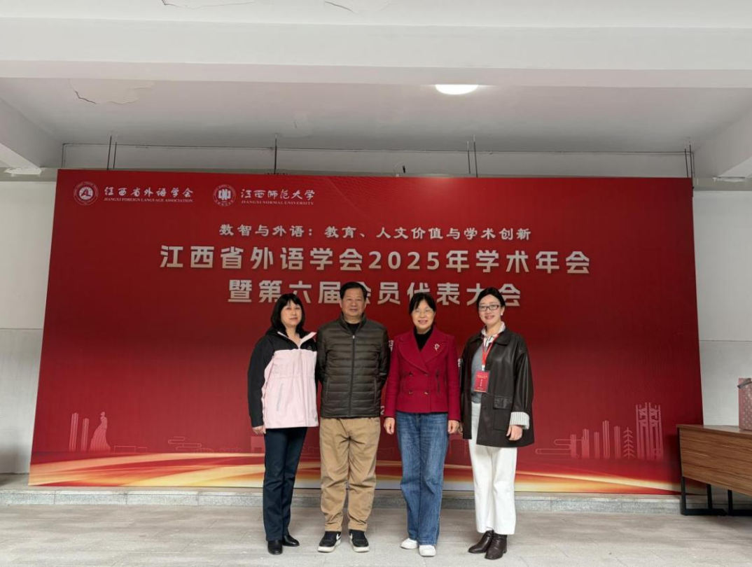 12月6日,外国语学院院长高芸一行四人代表学院参加江西省外语学会2025年学术年会暨第六届会员代表大会。本次会议由江西省外语学会主办、江西师范大学外国语学院承办。