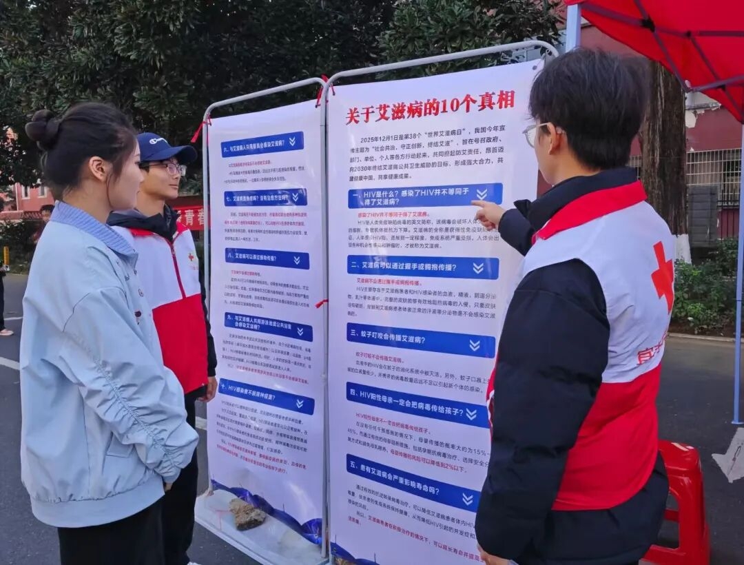 12月1日,宜春学院红十字协会围绕“社会共治,守正创新,终结艾滋”主题,开展了世界艾滋病日宣传活动。活动通过设置签名墙、知识竞答等互动形式,向广大师生系统普及了艾滋病的传播途径与防护知识。现场气氛热烈,有效提升了同学们的防艾意识与能力,营造了“人人懂防艾、人人显包容”的校园氛围。