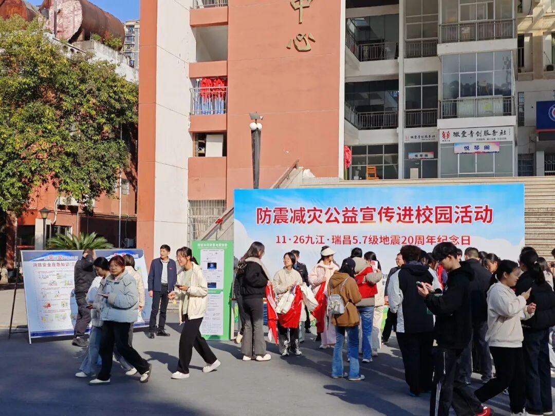 11月22日上午,宜春学院团委联合宜春市应急管理局、袁州区应急管理局举行防震减灾公益宣传进校园活动。活动现场志愿者手持宣传册,对参与活动的同学们进行一对一的宣传,认真讲解“江西地震预警信息发布”小程序的操作流程,让防震减灾知识与预警服务传递到更多师生。